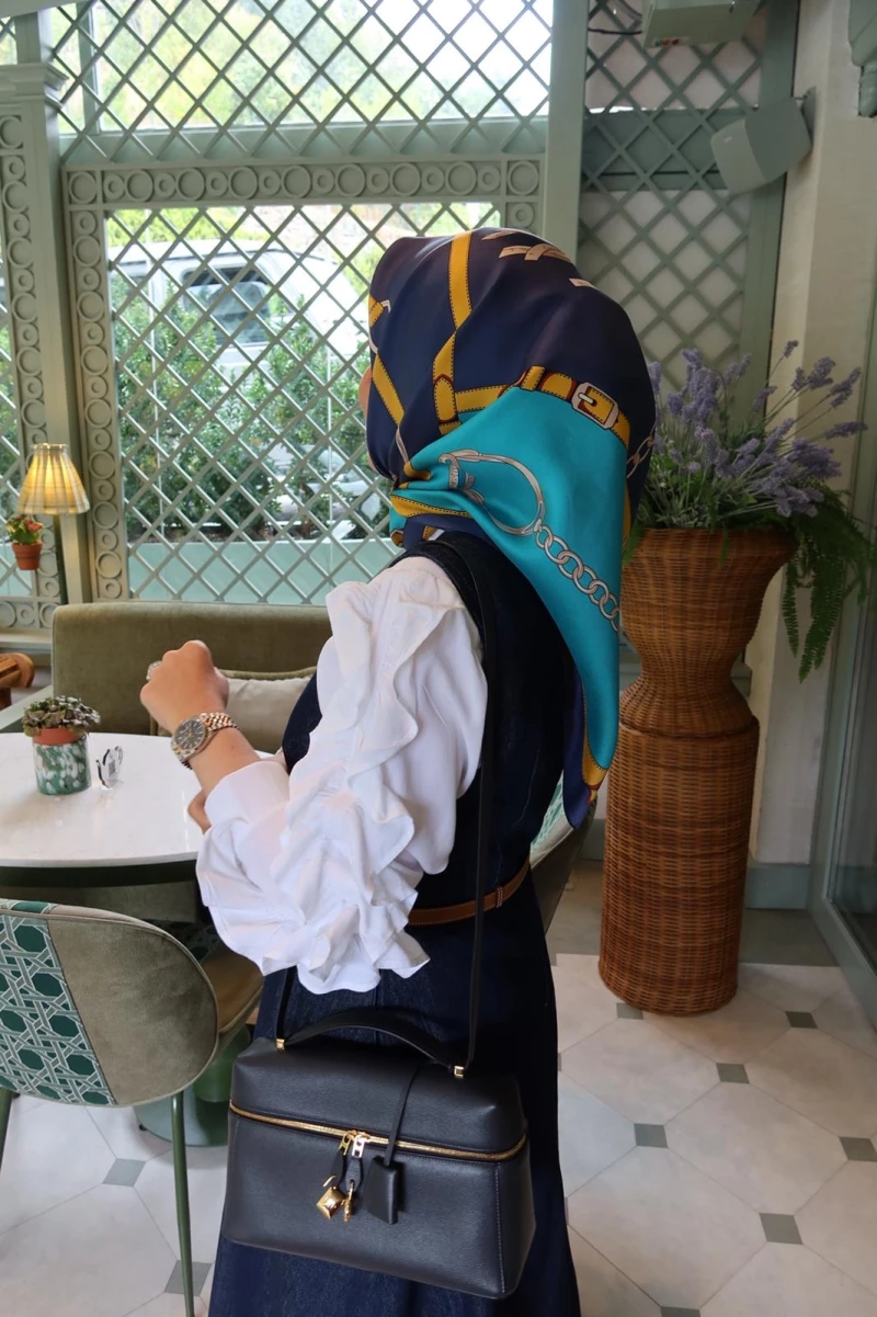 İpek Eşarp İçerik: %100 Twill İpek Boy: 90cm En: 90cm 4 mevsim kullanıma uygundur. Sadece kuru temizleme yapılabilir.