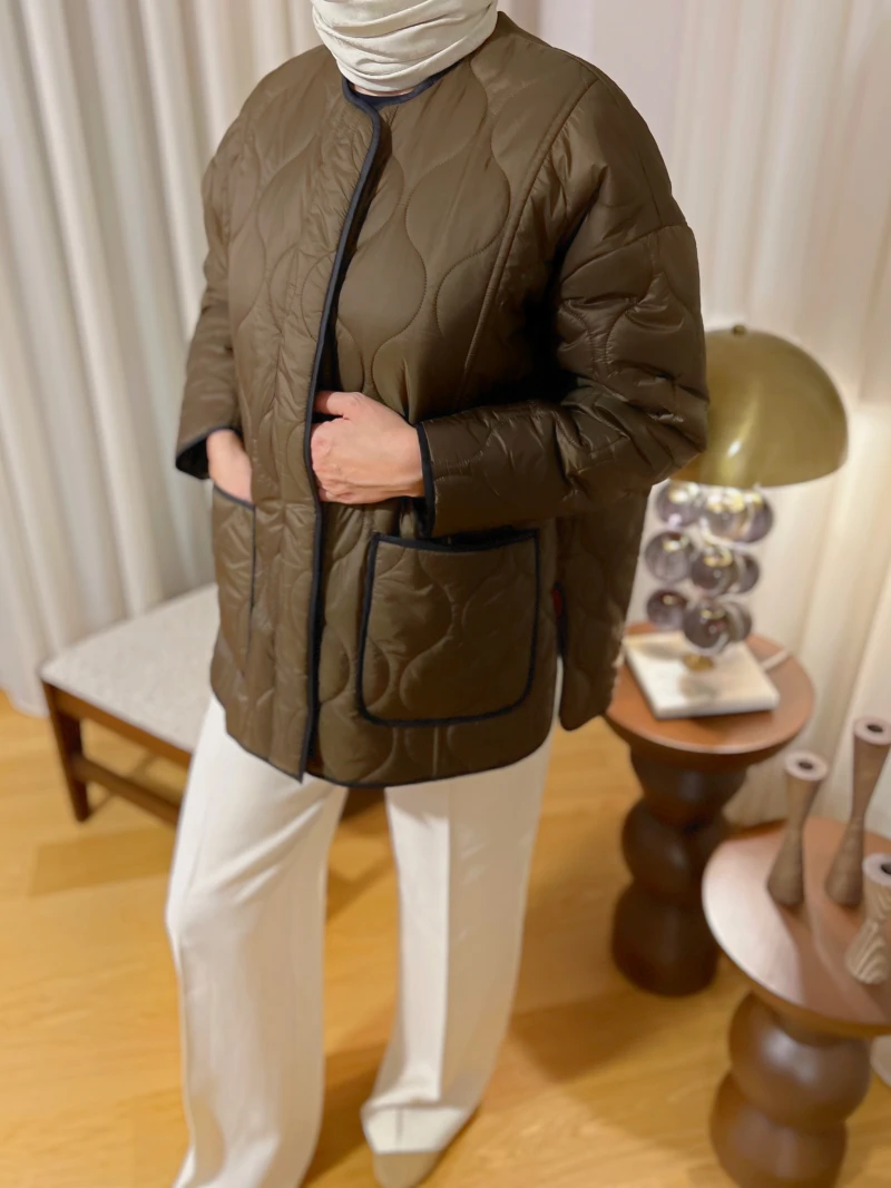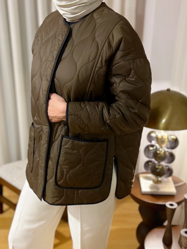 Kapitone Cep detaylı gizli çıtçıtlı mont