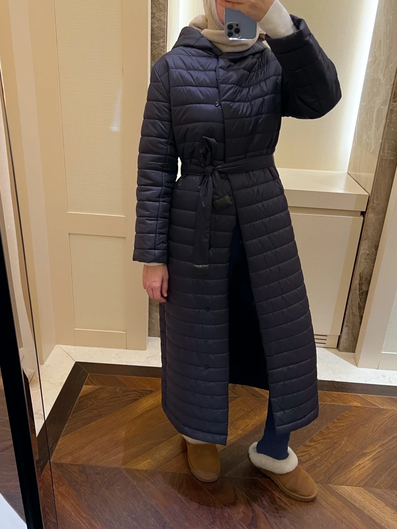 Kapitone Mikro Elyaf Dolgulu Maxi Boy Mont. Gizli Fermuarlı Cep Detaylı Kuşaklı Mont. 36/38 olmak üzere 1 Beden , 40/42 olmak üzere 2 beden ölçüsü mevcuttur.