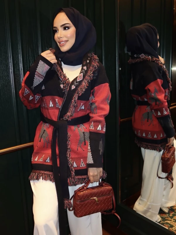 Kruvaze Model Belinde Seyyar Kuşaklı Hırka
