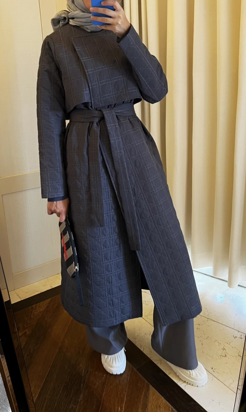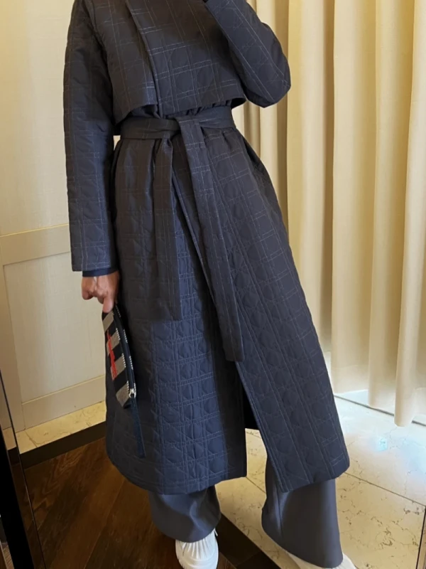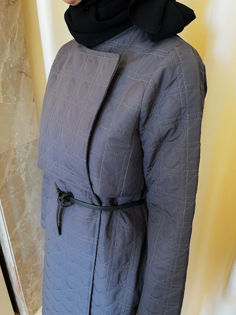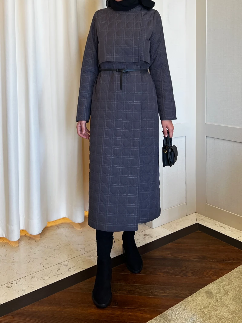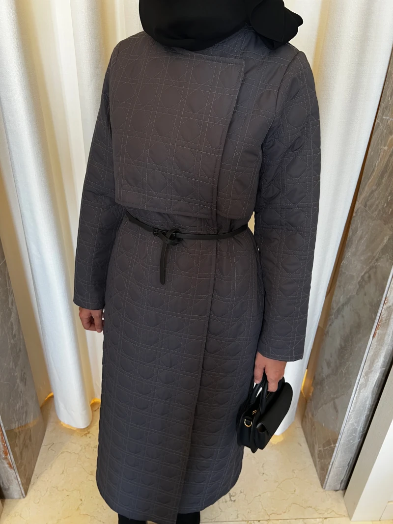 Kruvaze tasarımlı uzun kapitone mont.